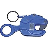 Grips sheet until release ring is pulled. Serrated gripper constructed of hardened steel. Forged head and gear. Safety factor is 2 to 1. Durable blue paint finish. Designed to meet ASME B30.20 standards. Load Capacity (lbs.): 2,000, Throat Depth (in.): 2.3, Bale Opening (in.): 1.9, Plate Thickness (in.): 0.8